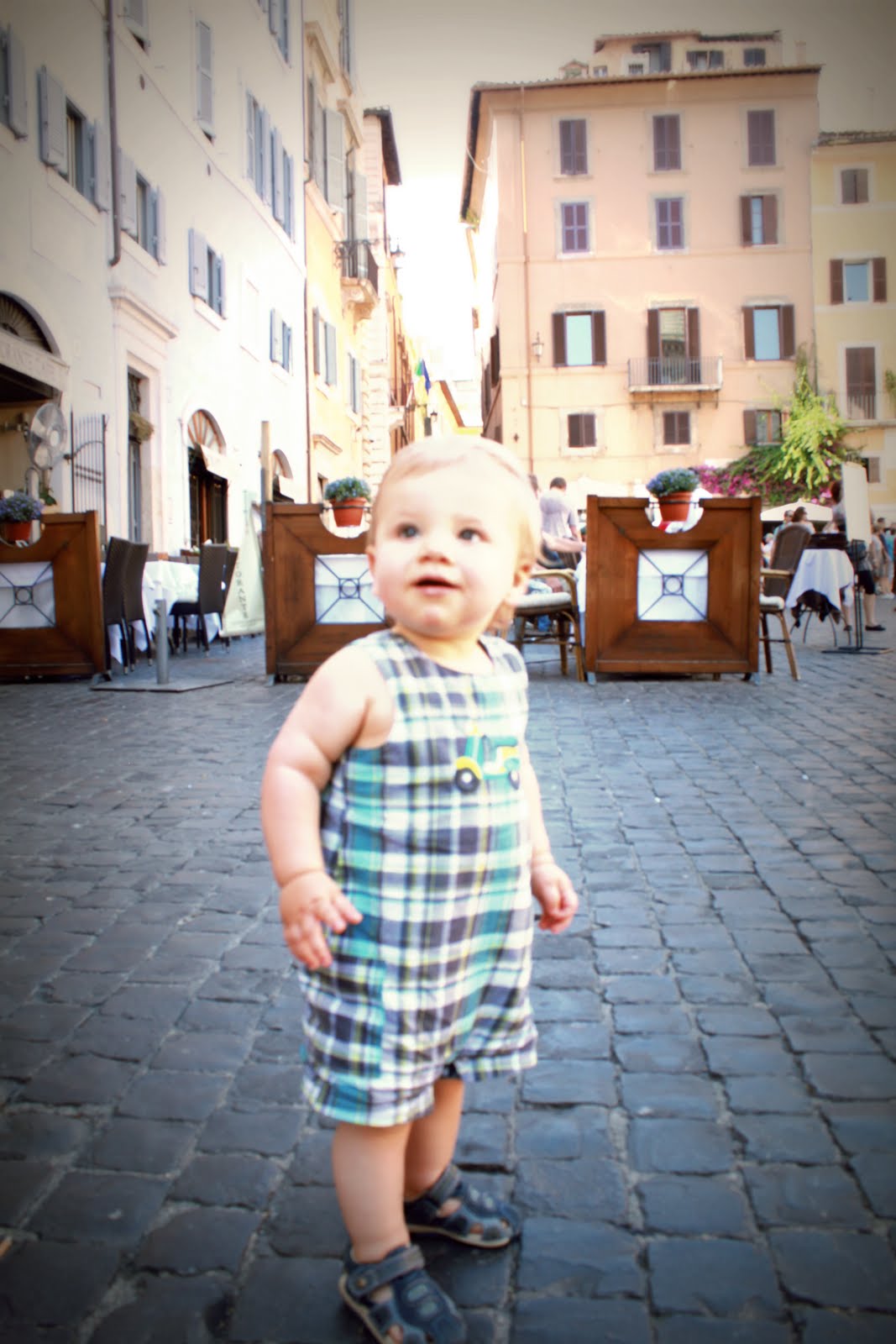 Buon Giorno via Roma! Well after cruising through the air in comfy first class style, we made it safe & sound to Rome Thursday night and spent the majority of our evening at the airport (which I don’t think had air conditioning – or at least not adequate air conditioning). The Boeing associate who made our rental car reservations made an error and between the fact that we don’t speak Italian and didn’t have a working phone or internet access, it took 4 hours to track down the issue and get a completely new rental. Four hours in the airport after a zillion hours of flying was not ideal but Jackson didn’t seem to mind much. We built a fortress out of our luggage which allowed him a safe place to play and still ample opportunity to wave at everyone who passed by. You can make a lot of friends in 4 hours when you’re 32 inches tall and cute as a button.
